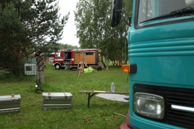 This time before the starting, I didn’t have so much things to prepare, the truck was set, the motor oil got changed and the little mechanical adjustments also. The main setting up was more like separating the “Sauna things” and the “Private things”. As I will live for almost 4 Weeks in a reduced Space and open this space to a lot of people, it was really important to me to define how far I feel comfortable just letting my private stuff visible in the truck. Sauna guests will see my wood work, my architecture skills, and decoration taste of course, this is part of the “Open Part” and also part of my personality, right. But they will also see my Books, my toothbrush, my underwear, and so on. (or at least the containers where I hid them). So it’s funny to deal with the facts that I travel alone in a loud box of 12m² and lose a lot of intimacy in the meanwhile.